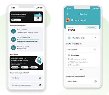 Tiered loyalty, progress dashboards, and streak tracking motivate users through visible milestones, reinforcing consistent financial habits over time.