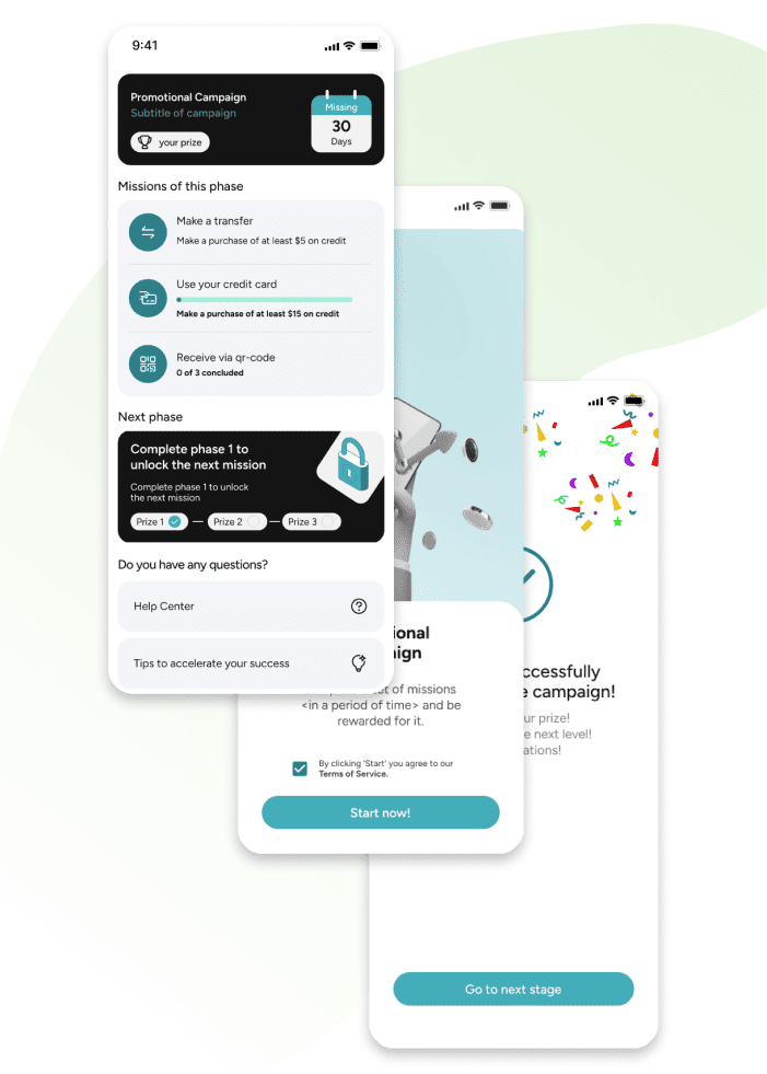 A versatile mission system rewards behaviors like transactions, savings milestones, and financial learning, driving continuous user participation and habit formation.